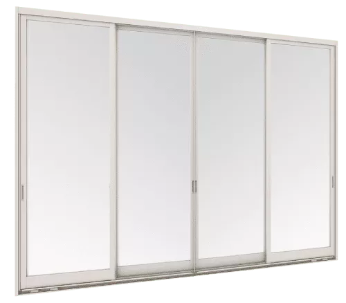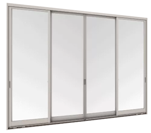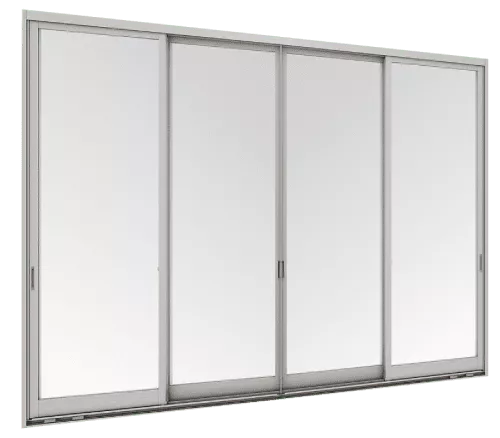 ประตูกระจกบานเลื่อน 4 บาน (2 ราง) มีความหนาของวงกบ 72 มม. ความสูงสูงสุด 3,045 มม. ความสูงของธรณีมี 2 ขนาดคือ 35 มม. และ 50 มม. รองรับกระจกหนา 5, 6 หรือ 8 มม. มีขนาดร่องกระจก 11 มม.